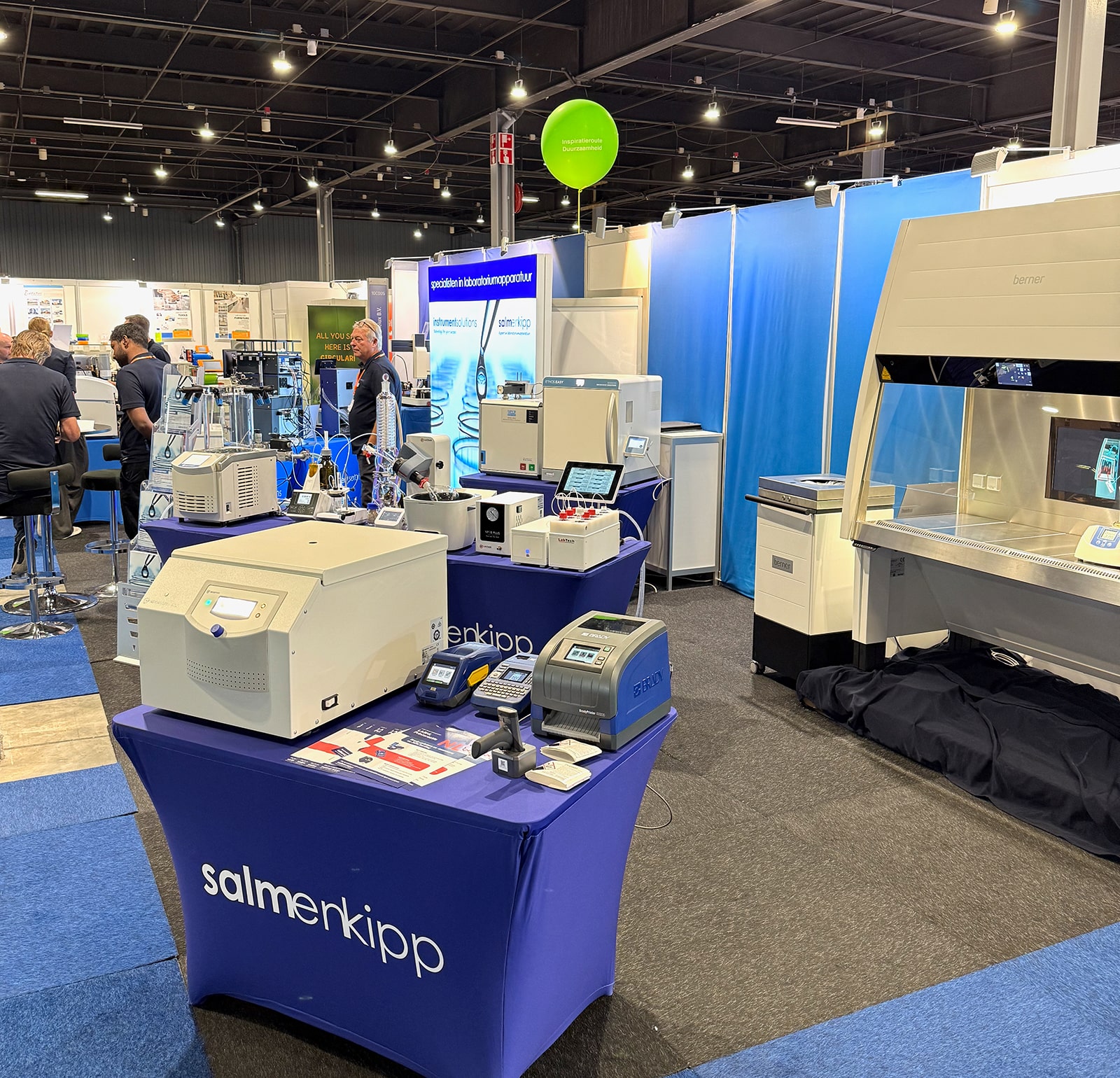 Naast de welbekende lijnen als Velp elementanalyzers, Milestone microwaves, Christ vriesdrogers, Sigma centrifuges en Brady identificatieproducten, werden bij Salm en Kipp de nieuwe bioveiligheidskasten Berner Claire Neo, de SI Analytics titratoren, de Labtech rotatiefilmverdampers en het multireactiestation Xelsius van Labtech extra in het zonnetje gezet.