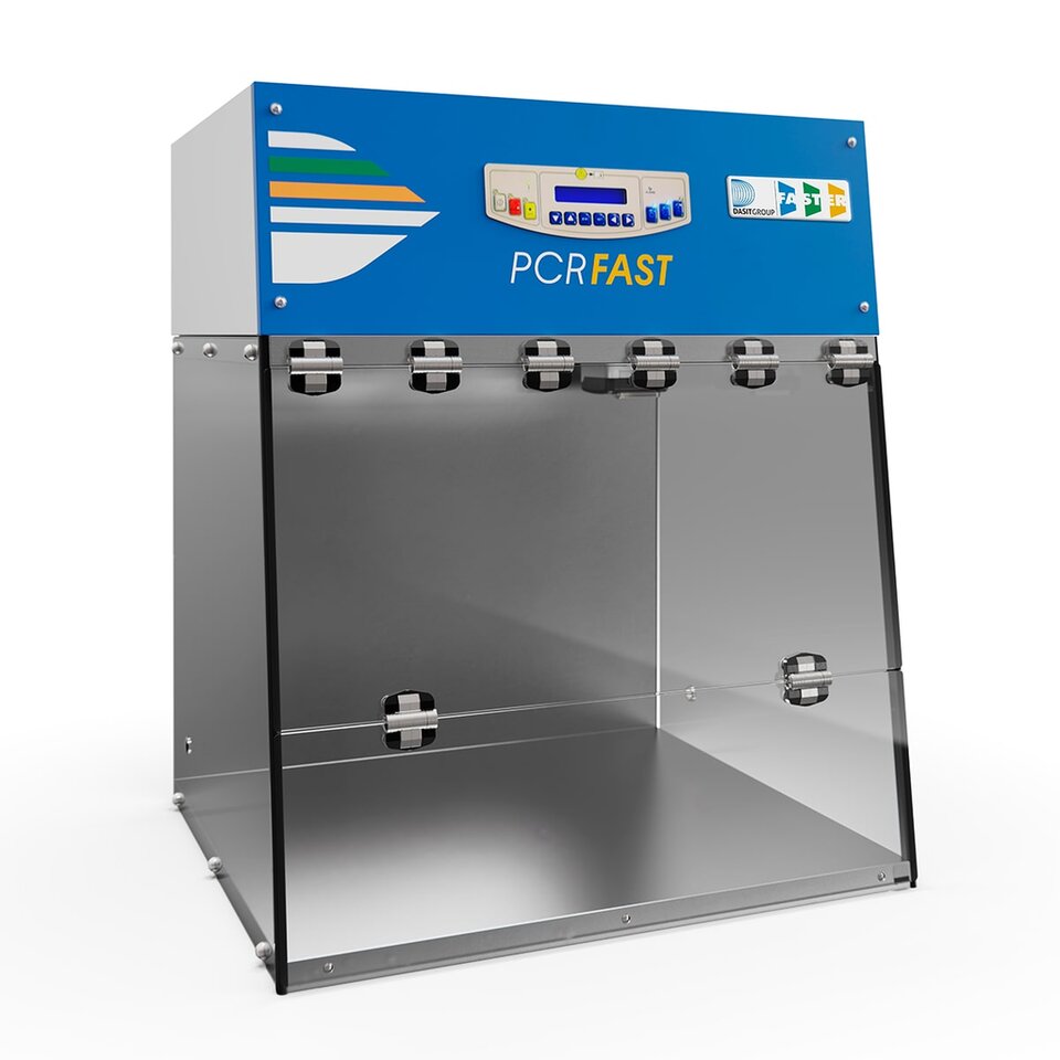 De FASTER PCR-FAST is een werkkast die specifiek is ontworpen voor het uitvoeren van gevoelige PCR-experimenten en andere experimenten met DNA of RNA. Hij wordt gebruikt in laboratoria voor microbiologie, hematologie, celkweek en genetica. Door voorafgaand aan en aansluitend op het PCR-proces het UV-licht in te schakelen heb je een gegarandeerd volledig steriele werkruimte en voorkom je besmetting tijdens het volgende PCR-proces.
