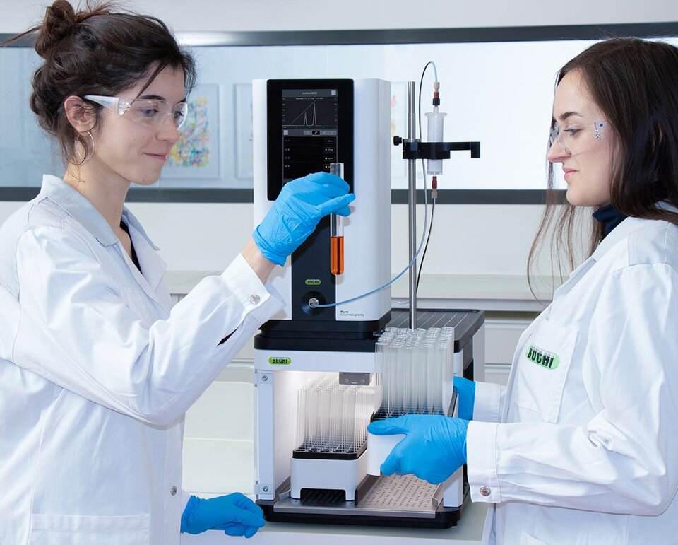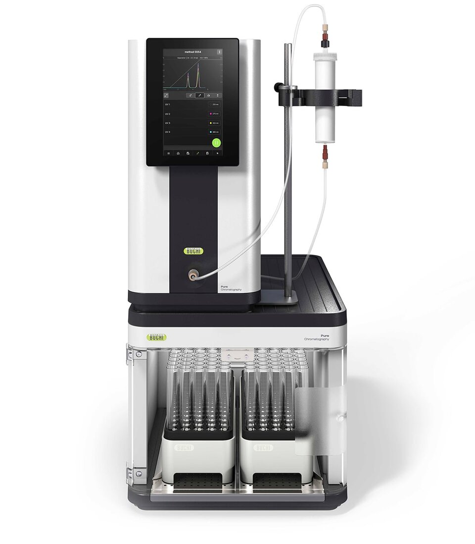 Het Pure Essential Flash Chromatography System van BUCHI brengt geautomatiseerde, reproduceerbare scheidingen naar elke labtafel. Dit systeem is uitgerust met een robuuste 50 bar driezuigerpomp, een intuïtief 7-inch touchscreen en voorverpakte cartridges. Hij optimaliseert de flow van het oplosmiddel; je hoeft niets handmatig in te stellen. Met dit systeem kan je de doorvoer tot een factor tien vergroten, terwijl het oplosmiddelgebruik met 30% afneemt. Dat levert ook flink tijdwinst op.